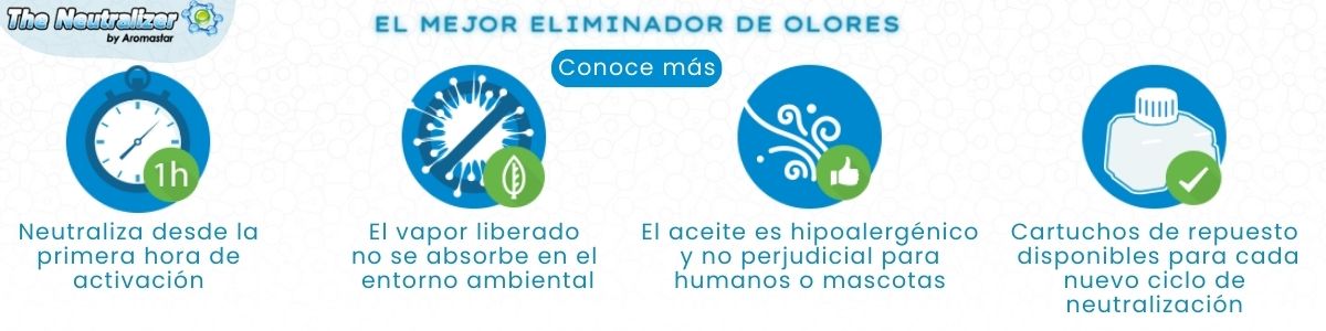 Descubre The Neutralizer, el eliminador de olores más avanzado. Tecnología de terpenos naturales que elimina olores sin enmascararlos. Seguro, eficaz y 100% natural.